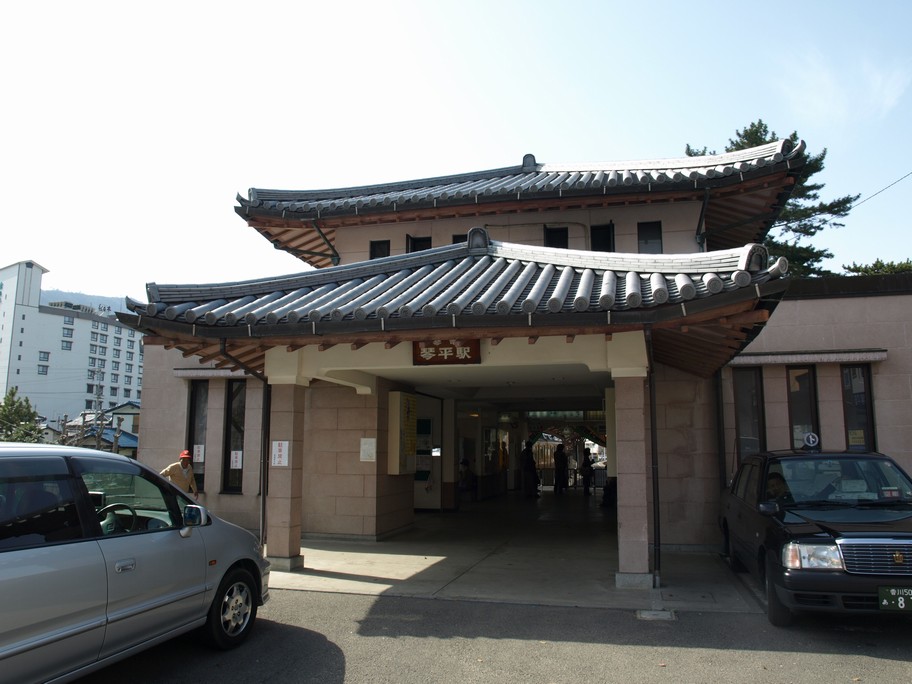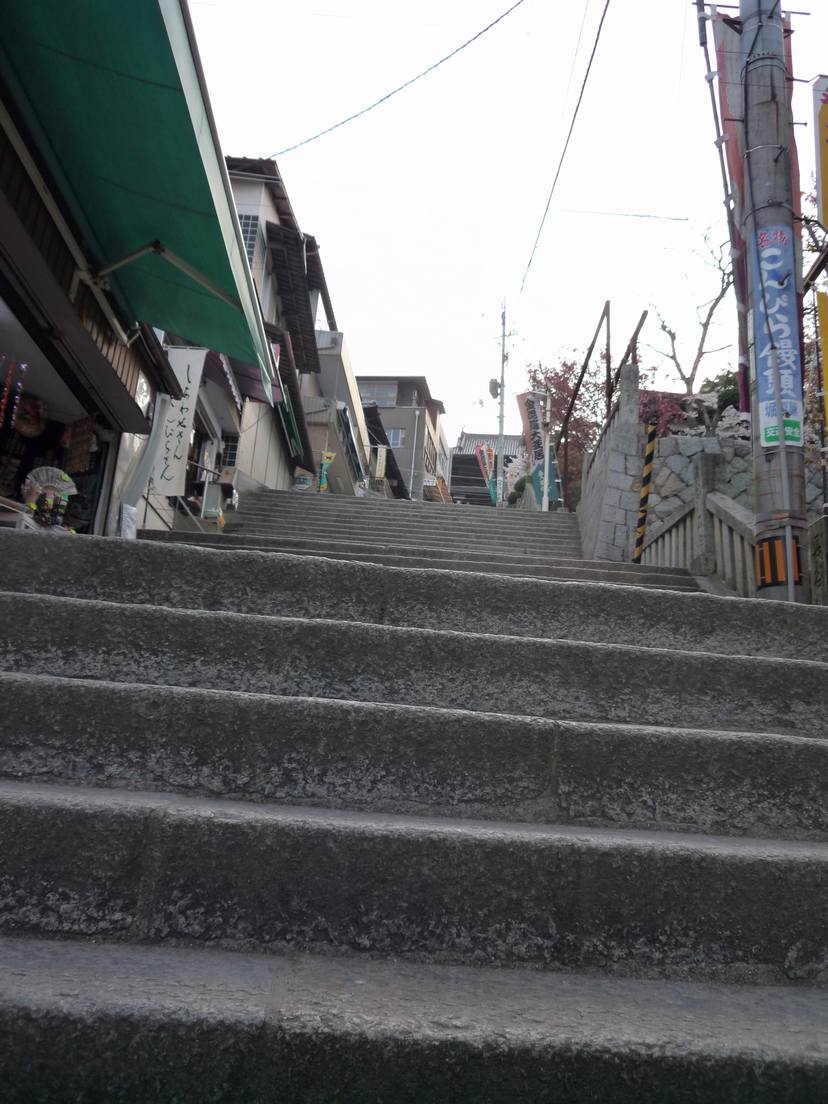 昨年末に母方の祖母が亡くなってしまって、本来ならもっと早く行かなければ行けなかったのですが 複雑な家庭の事情で行くことが許されていなくて、今回、なんとか許しを得て時間を作って香川の 金毘羅さんで有名な観光地・琴平に行ってきました。 まーーーーたく、オタク的な行動もなく、ただの観光的な写真ばっかりなんで、いつものアサガヲ として見るとつまらない記事ですw ちぃ散歩からインスピレーションを得て、”ごづ散歩”ってとこですwww 珍しく、観光地をタダ歩いて、綺麗だなぁーと思った風景を写真に収めてみました。 つうことで、お暇だったらご覧になって見てください。 東京駅から新幹線に揺られて4時間掛けて岡山へ。いやー、先日、レンタカーで大阪に行きましたが、 東京から大阪まで行きは7時間、帰りは12時間掛かったんですが、やっぱり新幹線は早いですね。 香川に行くのは、10数年振りですっごい懐かしいんですが、新潟から行くとなると今は、直通が なくなったんですが、雷鳥、もしくはブルートレインで大阪まで出て、そこから岡山に出て、瀬戸大橋 がなかった頃はフェリーで、できてからは南風に乗って行っていたんですけど、本当に香川まで 行くのが一日作業で用事を考えたら1泊2日で行くなんて、ありえなかったんですけど。 旅行することが多い私としては、日本も狭くなったなぁーって感じる一瞬だったりします。いい意味で。 さて、4時間掛けて岡山についてすぐに南風に乗り換えて、瀬戸大橋へLets GO! しかし、暑い。東京出るときは、かなり寒かったのに岡山に降り立つとめちゃめちゃ暖かい。まさに 春って気候で、着ていた上着が手荷物になって、ぶっちゃけどっかに捨てていこうか?と思うぐらい の暖かさ。 で、10数年ぶりの瀬戸内海横断!レインボーブリッジになれているせいかw、それほど感動は 大きくなかったですwww ゆりかもめって偉大だなぁー。 琴平についてみると本当に暖かい・・・・。長袖1枚で十分。 で、驚いたのが琴平の衰退っぷり。ニュースでは聞いていたんですが、観光地として賑わっていた 琴平は昔の話で、今では住民の高齢化と過疎化、そして観光客の減少で錆びれてしまった街に なっていました。 私が知っている琴平は、朝から晩まで観光客が闊歩し、町の隅にはスナックやキャバクラなどの ネオンがキラキラしている頃で、変わり果てた琴平にまじめに涙が出てきました。 で、こちらが”ことでん”こと、琴平電鉄の駅。 で、金毘羅さんの入口近くに宿を取っていたので、東京からの移動で疲れたので1時間ほど 休んでから、軽装で金毘羅さんに挑戦! 金毘羅さんの入口にはお土産屋さんが密集しているんですが、まぁ平日、夕方とあってちょうど、 店じまいの真っ最中。観光客も金毘羅参りを終えて、降りてくる人が多い中、中年オタクが一人、 逆走!ま、ほとんどの人がもう宿に帰ろうとしてる時間帯だったんで、寂しく一人で階段登りッス。 さて、金毘羅さんを知ってる人には、このリアルなきつさを知っていると思うんですけど、金毘羅さん 参りってのは、785段の階段を登っていき金刀比羅宮にお参りするんですが、785段ってえらい数 なんですよ! みろ、この絶望的な斜角!!! この地獄のような階段登りによる私の心の移り変わりはこんな感じ。 まー、昔取った杵柄、イイ大人になったし結構、余裕でしょ? ↓ うぉっ、結構、ふとももにくるのはやっ!これは、あさってぐらいに筋肉痛かな。 ↓ あれ?ふとももが上がらない・・・・、ってまだ100段も行ってないの? ↓ (*´Д`)/ヽァ/ヽァ とりあえず上を見るのは止めよう。一段一段、前を見つめて登ろう。 ↓ (*´Д`)/ヽァ/ヽァ (*´Д`)/ヽァ/ヽァ 前を見るのを止めよう。下を見てれば、いつの間にか頂上だ! ↓ (*´Д`)/ヽァ/ヽァ (*´Д`)/ヽァ/ヽァ (*´Д`)/ヽァ/ヽァ ウプッ ↓ べ、別に金毘羅参りしに来たわけじゃないんだからね!だから、辞めたっていいんだからねっ! ↓ ・・・・・・・・・・・・・・・・・・・・・・・・・・・・・・・・・・・・・ ↓ 無言 ↓ もう、辞めよう ↓ でも、高い金出してここまで来てるんだ!やってやるって!! ↓ 永久ループ ↑ 誰も見てないんだから、別に辞めても って、感じ。本当に苦しいんですよ、これ。太もも痛いし、息が苦しいし、斜角が本当に急すぎて 一段一段がガチきちー。自分がなんで、がんばってるかわからなくなるぐらい、思考能力が低下 するし・・・。 と、もういっぱいいっぱいの200段くらいのところで、目の冷めるような桜が目の前に。 心が洗われた。どす黒く黒ずんでいたマイハートがキュンキュンした。 で、300段ぐらいになるとこんな風景も。 マンガみてー。すっげぇー、綺麗。めちゃめちゃ感動しました。震える足を叩いて登ってきて、 足が立ち止まってしまいました。 聞いて見たところ、2日ぐらい前に見ごろを迎えたのと一緒に気温も急上昇して、この日が一番の 見どころだったらしく、旅館の人から「快晴で暖かくて、