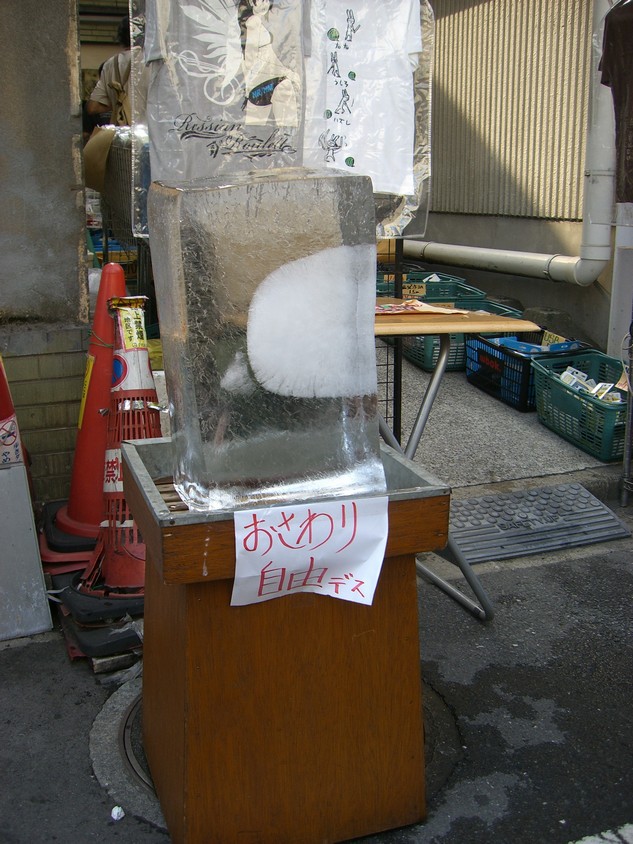 ワンフェスといえば、造形物の祭典としてお台場・国際展示場で年に2回、 開催されるイベントですが、実は、月1回のサイクルで秋葉原でもワンフェス は、ひっそりと開催されています。 どこで開催されているか?と、いうと・・・・・。 その場所は、三月兎1号店。 店自体は、非常に奥まったところにあり、案外見つけにくい場所にあります。 しかし、店前のとおりには、目印となるこんなものが! 氷柱です。 みんな辻斬りのように、通り過ぎる瞬間に触っていく ”辻触り”していきます。つめてぇ この氷柱は、アキバBlogさんのところでも取り上げられています。 三月兎1号店では、夏になると氷柱を道に毎年恒例になっている ようです。特に今年は、酷暑もあいまってみんなにエロく触られ まくってました。 そして、そんな三月兎1号店にこんな紙の看板が! 「Wonder T Festival」 ワンダーTフェスティバル、略してワンフェス。 このワンフェスは、ワンダーなTシャツを販売するという内容で なかなか、笑えるTシャツが狭い部屋に陳列されています。 実にユニークなTシャツが大量にあり、なかには「シャア専用」ならぬ 「ニャア専用」という赤いTシャツがあって、Tシャツの説明を見てみると 「三倍ネコが好き」と書かれている。遠くから見たら、コスパで販売され ている「シャア専用」に見間違えてしまう程、似ています。 真ん中の赤いやつです 私もついつい、一枚買ってしまいました。いずれ、そのTシャツを完璧な シチュエーションでご紹介できる時が来るので、そのとき紹介させて 頂きます。 本当に期待してください!!超くらだらないかも。 また、なかにはこんな萌えTシャツも すごい、綺麗でかつ萌えなんだけど、普通にこれを着て湘南に いても恥ずかしくないぐらいかっこいい。(センスずれてるかなぁ) 私も購入しようと思ったんですが、私が着たらこの綺麗なTシャツ がただのオタクTシャツにしか、見えないかも・・・・、と思い。 購入を断念。Tシャツを貶めてしまいそうで・・・・ 次回の開催などは、こちらで確認できると思います。 是非、一度、いって見てください。気に入る笑えるTシャツから萌える Tシャツがあると思います。 PR