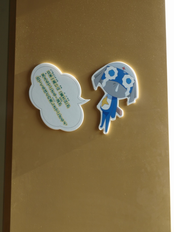 を記念して池袋のTOYOTAの総合ショールーム「アムラックス」と池袋サンシャイン60でイベント が行われています。 「超劇場版ケロロ軍曹3」を鑑賞したあと、取材に行ってきました。しかし、アムラックスでのイベント は、土日と祭日だけで平日に観にいったのでイベント自体は取材できませんでした。 アムラックスでは以下のようにスケジュールでイベントを開催している。 『春だ!桜だ!ケロロ軍曹 in アムラックス』 「超劇場版ケロロ軍曹3」の公開に合わせて、アムラックス東京にケロロ軍曹が登場!キャラ クター ショーやゲーム大会があるよ☆ ■期間:3月1日(土)~4月6日(日) *月曜日は休館(祝・祭日の場合は翌日) ■場所:アムラックス東京 *開館時間11:00~19:00(B1F・1Fは11:00~21:00) また、チケットの半券もしくは、サンシャイン60展望室の入場券の半券を持っていくとケロロ軍曹 の缶バッジがもらえます。 そして、もうひとつのイベント会場は、サンシャイン60の60F展望室です。 概要は、以下。 『東京大パノラマを見るであります!in サンシャイン』 「超劇場版ケロロ軍曹3」の見どころを紹介するパネル展示や、原作者・吉崎観音先生の複製原画 の展示、世界で放映されるケロロ軍曹を紹介するほか、スタンプラリー、グッズ販売など内容もり だくさんのイベントだよ☆ ■期間:2月23日(土)~4月6日(日) ■場所:サンシャイン60展望台 *開館時間10:00~21:30(入場は終了の30分前まで) *スカイデッキのご利用は土日祝及び3月14日 ■入場料:展望台入場料のみでご覧いただけます。 大人:620円 子ども(4才~小学生):310円 となっている。ちなみにチケットの半券を持っていくと入場料が安くなります。 そして、展望室ではケロロ小隊が展望室から見える景色の紹介をしてくれます。 景色を眺める窓の横にケロロ小隊がケロロ小隊らしく説明をしてくれています。 ここからは、ケロロ小隊の説明を掲載します。実際の景色は、是非サンシャイン60へ行って確認 して観てください。 展望室にあるアナウンスルームにいらっしゃいました軍曹さーん。 パネル展示場は、こんな感じ ここでは、絵コンテや複製原画、ケロロ軍曹と声優さんのパネルなどが展示されており、かなりの ボリュームが展示されていました。しかし、どこかで観たような展示物が多いような・・・・、あぁ、 バンダイさんの必殺”使いまわし”か・・・・orz また、この展望室の喫茶店では、ケロロ軍曹スペシャルメニューが用意されています。 内容は、こちら。 いきなり団子(お茶付) ケロロVSギロロ 400円 宇宙お好み焼き 550円 ケロロが大好き!!星ポテト 400円 天空エアエアティー(ピーチティー) 300円 天空ギロロ100%絞りジュース(レッドオレンジ) 350円 事前に知らなくて、おなか一杯で取材に行っていたのでどれも食べることが出来ませんでした。 いきなり団子は売れ切れてるし・・・・。どうせなら、午後のモアモアティーとかが良かった。 と、映画を見た後、映画が始まるまでの時間に回って観てはどうでしょうか?かなり、楽しめると 思います。ちなみに、私はサンシャイン60へは初めていったのですが、けっこう景色が良くて 感動しました。 [関連記事] 超劇場版ケロロ軍曹3 ぬるレビュー [関連リンク] アムラックス公式サイト PR