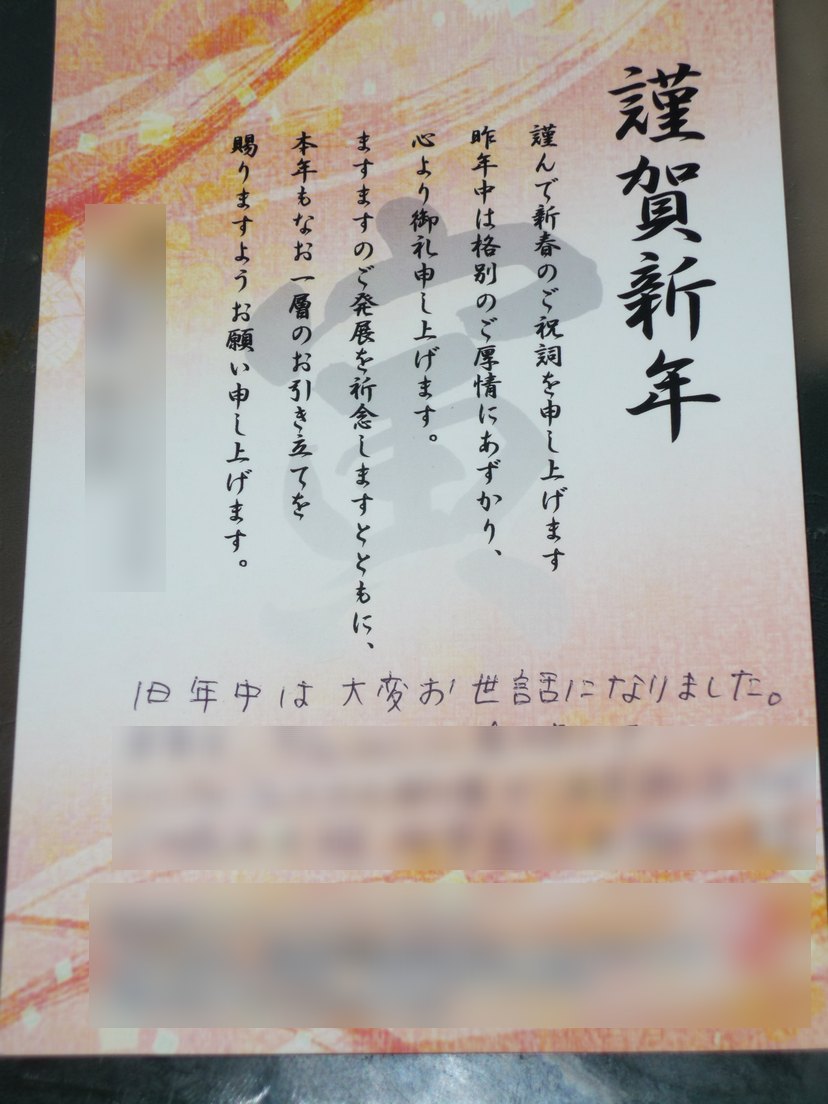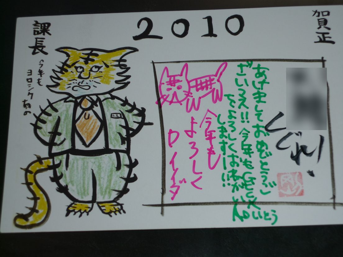 とりあえず、今年の目標は、”現状維持”です。おさらく、今のご時世、現状維持すら難しいと思い ますので、それなりにハードルの高い目標と思っています。また、アサガヲBlogとしましては、 また、色んなとこに足を運び、また新しいことにも色々とチャレンジして、アサガヲBlogの新しい 一面でも披露できたらな、と思っております。 2010年もごっづともども、アサガヲBlogをよろしくお願いいたします。 さて、基本的に友人が少なく、親類縁者も少なく、基本的には”年賀状”と呼ばれるものは、 風俗とかw、紳士服とかのお店からしか来ないのですが・・・・まぁ、人望=年賀状の枚数って 感じがしてならないです・・・・。゚(゚´Д`゚)゚。 そんな中、ゲームセンターCXの有野課長から年賀状がキタ――(゚∀゚)――!! もうひとつ、フィギュアメーカーの某社からも年賀状がキタ――(゚∀゚)――!! ヤフーーーー!有野課長から年賀状もらえたぜっ! っていっても、先日、秋葉原で開催されたゲームセンターCXのイベント「ハッピーマンを探せ!」に 参加すれば、普通に送ってもらえるモンなんですけどね・・・・・あははははは。 ×××くぐれ! (×××のとこは、私の名前) AD伊藤さんとDイイダさんからもメッセージが入ってるw いとうちゃぁぁぁんLOVE。 って、Dのイイダってだれ? で、もう一枚。某フィギュアメーカーさんからも年賀状いただきました。 一応、会社名とか出しちゃまずいかなぁー、と思ったんで一応、ぼかしときました。 フィギュアとか、あんまり掲載してないのになぜ?と思ったんですけど、冷静に考えたら今年は 何度もお世話になっていましたw こんな小さなブログにも気に掛けてもらってる思うだけで、涙が出そうになりますよ、マジメに。 つか、アサガヲBlogとして年賀状をもらうって、今までなかったので嬉しいもんですね。 まぁ、一人寂しい元旦に素晴らしい年賀状いただけて嬉しかったです。 [関連記事] ゲームセンターCX アキバで「ハッピーマンを探せ!」参加レポ PR |