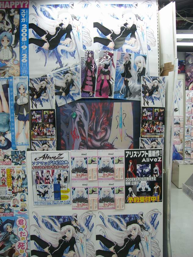 ソフマップ・AM館に行ってみたら、気になるエロゲの予約告知が行われていました。 私は、学生の頃からのアリスソフトファンで、自分で初めて購入したエロゲが「闘神都市Ⅱ」で、 それ以来、アリスソフトのエロゲはかなりプレイしています。「夜が来る」とか「鬼畜王ランス」とか 「ダークロウズ」とか。とにかく、あの絵が好き。それと私が学生の頃のエロゲの主流は、エロが 特に陵辱系でエロがメインでゲーム性がほとんどなかったのですが、アリスソフトはゲーム性 に異様に力をいれていて、エロシーンを見るのにかなり苦労した記憶があります。 そんなアリスソフト好きな私がソフマップ・AM館で見つけたアリスソフトの新作がこちら。 「Alivez」 ジャンル:アドベンチャー 価格:7875円 アリスソフトは、本当に私のストライクゾーンを心得ています。しかも、球種はナックル。ただし、どんな に球筋が変化してもすべてストライクゾーンを外しません。しかも、内容も私の大好きな剣モノ。 この絵なんか、私のどストライク!! 美少女に大剣! 俺は、美少女に大剣が大好きなんだぁーーーー!(屮゚Д゚)屮 Fate/hollow ataraxiaのカレン・オルテンシアに見えてしまいましたが・・・。 なんて、汚いんだアリスソフト。金欠になる今月末に発売とは・・・。 ソフマップ・AM館では、予約が開始されており、「AliveZ」告知スペースをかなり広く取っていました。 そして、こちらがソフマップの予約特典。クリアファイルセットみたいです。 これは、買うしかない、買うしかないんだ、買うしかないんだ、買うしかないんだ・・・・・ブツブツ。 と、いうことことでこのソフトを購入します!! PR