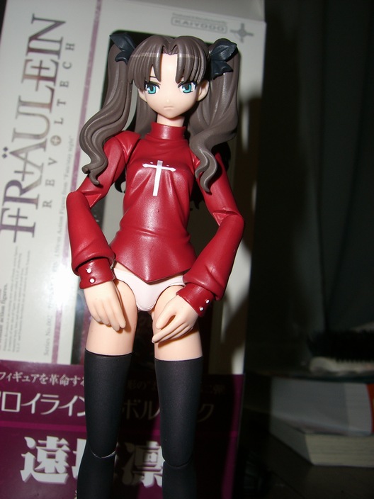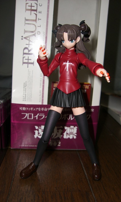 発表になったリボルテックの新シリーズ「F+R+AUKE+IN」(お嬢様)。その「F+R+AUKE+IN」の 第2弾となる「Fate/Staynight」のヒロインの一人”遠坂 凛”が発売されました。 リボルテックでは、すでにセイバーとセイバー・オルタナティヴが発売になっていましたが、待ち に待った最強ツインテールの”遠坂 凛”が発売となったので、アキバで買ってきました。 リボルテック「F+R+AUKE+IN」シリーズは、第1弾として新世紀エヴァンゲリオンの”綾波 レイ” が発売となっており、第3弾に「惣流・アスカ・ラングレー」、第4弾・山下しゅんや作品集「Sweet Dreams」より「POCCO」が予定されています。 では、”遠坂 凛”をレビューします。 さすがリボルテック、各四肢の稼働範囲が広く、またツインテールまで稼動可能。付属部品として 手の部分が3セットついていて、その中に”遠坂 凛”の魔力を貯めている宝石を持ったモノもあり ます。(写真は、宝石を持った手を装備) ちょっと、”ジョジョ立ち”。 スカートが柔らかい素材となっていて、足の稼動範囲の邪魔にならない為、足を広げられるます。 絶対領域を完備は、基本なのですが、このスカートがかなりのクセモノ。以外に下から除いても 絶妙な暗さと狭さでパンチラが絶妙なトライアングルに!! ”アゾット剣”も付いてきてます。 少々、肩が外れやすい面があり、ポーズの変更の際にちょっとうざい。 最後にスカートのキャストオフも確認。 白。 しかし、キャストオフしてしまうと逆に萌えが足りない。 と、単純にフィギュアとして見るとかなり納得の出来でツインテールの稼動などは、意外にポーズ をつける際にいろいろなパターンを増やすこともできそうです。 店頭販売価格約2000円と考えれば、かなりお手軽なのかもしれません。 凛好きは、買うべき。 [関連記事] リボルテックエキスポ07 機動戦士ガンダム00 DXヒロインフィギュア1 ぬるレビュー 機動戦士ガンダム 0083 カードビルダーDXガールズフィギュア ねんどろいど ぷち -涼宮ハルヒの憂鬱 ♯01- ガンダムSEED DESTINY DX組立式ガールズフィギュアスペシャル ぬるレビュー beatmaniaⅡDX Figure Collection ぬるレビュー 新世紀エヴァンゲリオン エクストラモーターライダースフィギュア ぬるレビュー ガンダムSEED DESTINY DXイメージディスプレイフィギュア ぬるレビュー 涼宮ハルヒの憂鬱 フィギュアセット北高HR コンプリート版 ぬるレビュー 涼宮ハルヒの憂鬱 フィギュアセット北高HR ぬるレビュー PR