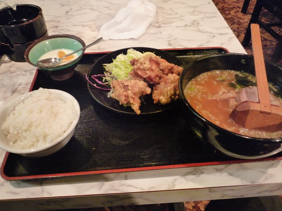 で、今回注文したのは・・・、おすすめのランチセットじゃなくて、ラーメン&から揚げ、ご飯セット