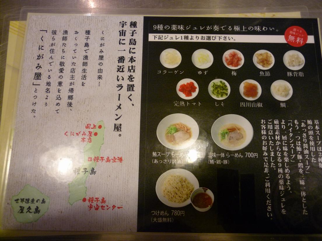これしかないッス。マジ、ネタがないッス。1ヶ月に1回ぐらいエアポケットのようにネタがなくなります。 毎日ブログ更新は、オラには無理ッス。ということで、ネタがないのでヲ食感領を掲載します。 今回、ご紹介するのは、私がよくパチンコ・パチスロをしに行く街・高円寺にあるラーメン屋です。 昨年の12月だったかな?JR高円寺駅のすぐちかくにラーメン屋4店舗が集った「高円寺ラーメン 横丁」という施設ができて、蒙古タンメン「中本」、つけめん「TETU」、とりそば「大喜庵」、そして、 種子島商店「くにがみ屋」がお店を構えています。 今回は、その1店舗・種子島商店「くにがみ屋」をご紹介します。 とりあえず、パチスロ「機動戦艦ナデシコ」で20kほど勝利した時に帰りに食べてきたんで、それなり においしいものでも!と思っていたんですが・・・やっぱりラーメン。 今年の1月ごろにも行って見たんですが、行ったのが休日のお昼頃というのもあって、列が形成 されていたので、あっさり断念。今回は、パチスロ終わりの夜、閉店ギリギリとあって列がなく普通に 食べることが出来ました。 今回、注文したのは鮪スープラーメン。 鮪の頭を使用したあっさりとした醤油スープという触れ込みだったのですが、鮪でダシを取るラーメン は実は初めて。(いくつか有名なところがあるみたいですけどね) ちょっと、珍しいのが9種類の薬味を選べること。 コラーゲン、ゆず、梅、魚節、豚背脂、完熟トマト、しそ、四川山椒、鯛の9種類。スープが本当に あっさりで、シソとか梅とかの味がよくアクセントになりそうなほど、シンプルかつ魚介系の味がする スープ。で、とりあえずスープの味をダイレクトで楽しみたかったから鯛をセレクトしてみたんですが、 すっげぇー、鯛の味が広がる。もともと、あっさりしすぎていてそれだけでもシンプルでおいしい スープだったんですけど、鯛を入れることで鯛の魚介味がよりいっそう強まって、また麺にもしっかり 絡み、めちゃうまっ! しかも、チャーシューもうまくて、少し炙っているせいか焦げと魚介スープがフィットして、さらなる 上手さがでてくる。 ウッマーーーーーーーーーーーーーーーーーーイッゾーーーーーーーーーーーーーー! このラーメン、マジオススメっすわー。気に入った!残念なのは、ちと麺が少ない。多分、スープが うますぎて、麺の進みが速くて少なく感じちゃったのかもしれないけど、これウマイっすわー。 メニューとしては、他にも鮪・鳥・豚のスープを合わせた三位一体ラーメンとつけ麺が用意されていて、 また鯛メシが200円で食べ放題まである! これは、マジでウマイラーメンです。さすがにこういうラーメン複合施設に出てくるラーメンはデフォで クォリティーの高いラーメン屋が多いですね。 これは、マジオススメッス。 [関連記事] ヲ食感領 第58回 第一印象が給食のソフト麺「秋葉らーめん 松風」 ヲ食感領 第57回 コミケ帰り超贅沢「築地で寿司」 ヲ食感領 第56回 アキバの古株中華料理屋「雁川」 ヲ食感領 第55回 お口の周りがケチャップだらけ「ナポリタンのパンチョ」 ヲ食感領 第54回 釜たまってどう食うの?「讃岐うどん伊吹や製麺」 ヲ食感領 第53回 ウズラの卵入り横浜家系ラーメン「港家」 ヲ食感領 第52回 それ商品化しちゃダメ!「マクロスFコラボ パインケーキ」 ヲ食感領 第51回 家系が曜日限定でつけめんに「相原家」 ヲ食感領 第50回 納豆ダイスキ!「水戸納豆カレー」 ヲ食感領 第49回 カレーラーメンってあり?「麺屋武蔵 武仁」 ヲ食感領 第48回 貧乏旅行だから台湾名物「台中・屋台グルメ」 ヲ食感領 第47回 旨い焼き鳥で親子丼「あぶりとり バリ鳥」 ヲ食感領 第46回 立ち食いそばだからって舐めんなよっ!「きそば 鈴一」 ヲ食感領 第45回 ”ホンモノ”のカツってヤツを食ってみないか?「かつ平」 ヲ食感領 第44回 コミケ帰りに築地寄って大トロ「魚河岸千両」 ヲ食感領 第43回 店員が「我愛称w」?仕事汁!「博多風龍」 ヲ食感領 鶏肉業務用卸店が営んでる鳥飯屋「鳥藤 分店」 ヲ食感領 第41回 コスプレパレードの合い間に「名古屋メシ」 ヲ食感領 第40回 みさくらなんこつデザインエプロン「こくまろみるく」 ヲ食感領 第39回 新潟で食ってきた色々なモン ヲ食感領 第38回 居酒屋で出される枝豆はもう食えない「黒崎の朝摘み枝豆」 ヲ食感領 第37回 築地で働く人たちの力の源「きつねや ホルモン丼」 ヲ食感領 第36回 築地といえば鮮魚「築地うおがし丼 かん乃」 ヲ食感領 第35回 やっぱり量がハンパねぇ「伝説のスタ丼 秋葉原店」 ヲ食感領 第34回 米菓の聖地よりやってきた「新潟チップス」 ヲ食感領 第33回 ランチには列ができるインド料理店「シャリマール」 ヲ食感領 第32回 アサガヲ教えたくないラーメン屋「がんこラーメン八代目」 ヲ食感領 第31回 まともにステーキ食べるなら「HERO'S」 ヲ食感領 第30回 一人で焼肉、恥ずかしくないんだモン!「焼肉丼たどん」 ヲ食感領 第29回 寡黙なオヤジさんが作る洋