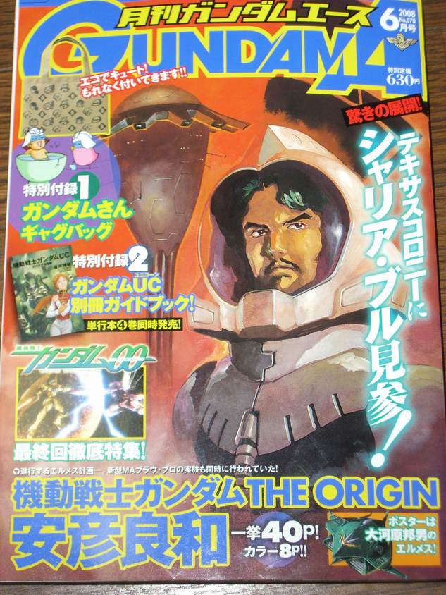 今月も購入しました「ガンダムA(エース) 6月号」。今月号は、機動戦士ガンダム・ORIGINにしても