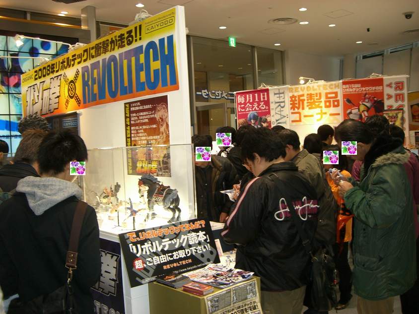 12月1日(土)に秋葉原のUDX4階にある東京アニメセンターで”可動しまくる” フィギュアを発売しているリボルテックの新作フィギュアを展示・発表するイベント ”リボルテックエキスポ07”が開催されました。 私が、東京アニメセンターに着いたのはお昼12:00頃だったのですが、東京アニメ センター前に50人程の列ができていました。 東京アニメセンターは、それほど大きな施設ではなく、人が100人も入れば、センター が満杯になってしまうような広さしかありません。そのため、入場制限がかけられており 入り口前に多くのリボルテックファンが集まっていました。 待つ事20分。結構、早く入場できました。 |