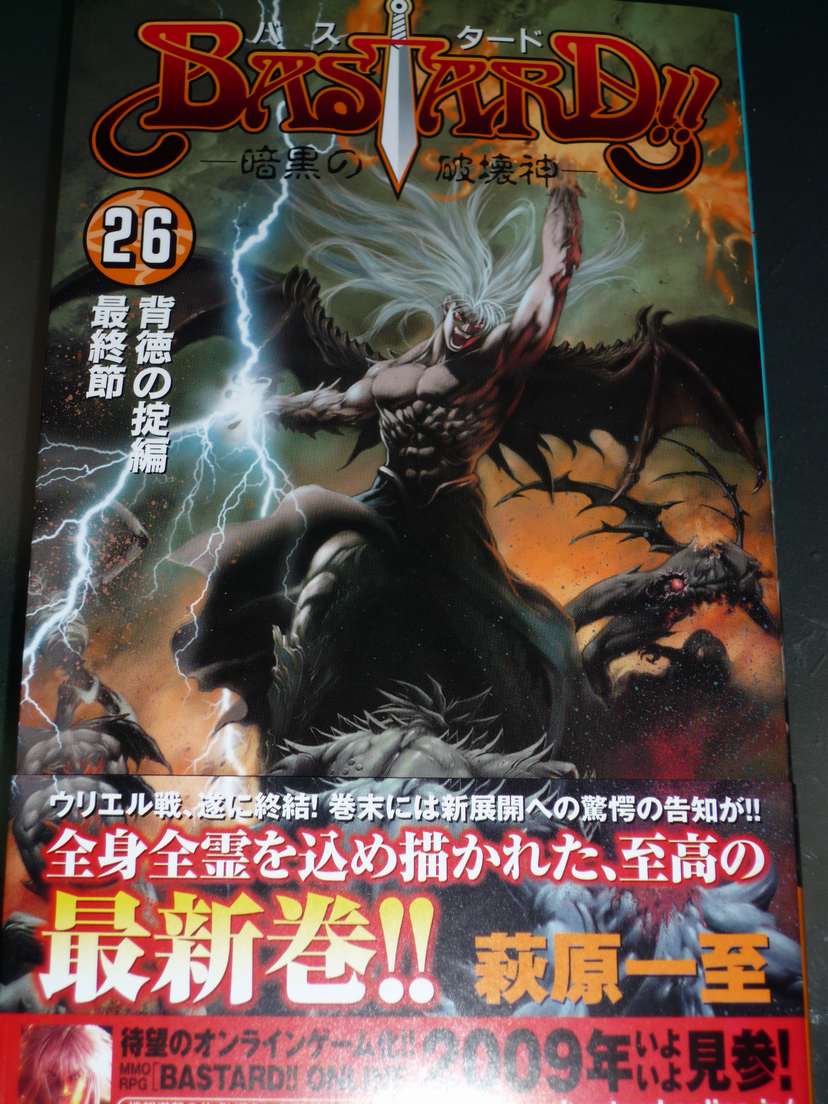 -暗黒の破壊神-」の最新刊となる26巻が発売されました。 現在、少年誌の正当派であるジャンプでオパーイ表現だけでなく、単行本化時にB地区表現を追加 するという革命的なチャレンジを続ける「To LOVEる」も、おそらくはこの少年ジャンプの破壊神・ 「BASTARD!! -暗黒の破壊神-」の直接的すぐる性的表現にはかなわないでしょう。 少年誌で性的表現がタブーとされていた1990年代(連載開始は、1988年)で、これほど、いや現代 のジャンプにおいても、PTAを敵にまわし、脳ミソ全てがピンク色だったジャンプ読者の性欲の対象 であり続け、つねに表現できるギリギリのレベルで攻め続けた超攻撃的な漫画はないでしょう。 「To LOVEる」は、B地区レベルですが、「BASTARD!! -暗黒の破壊神-」は、チ○コですからねー。 少年ジャンプでの連載当時、いつエロすぎて休載になるか見てる方が心配していましたよ。 つうことで、今や「To LOVEる」の方が表現も勢いも負けてしまっているマイルド・エロな作品 「BASTARD!! -暗黒の破壊神-」26巻をレビューします。