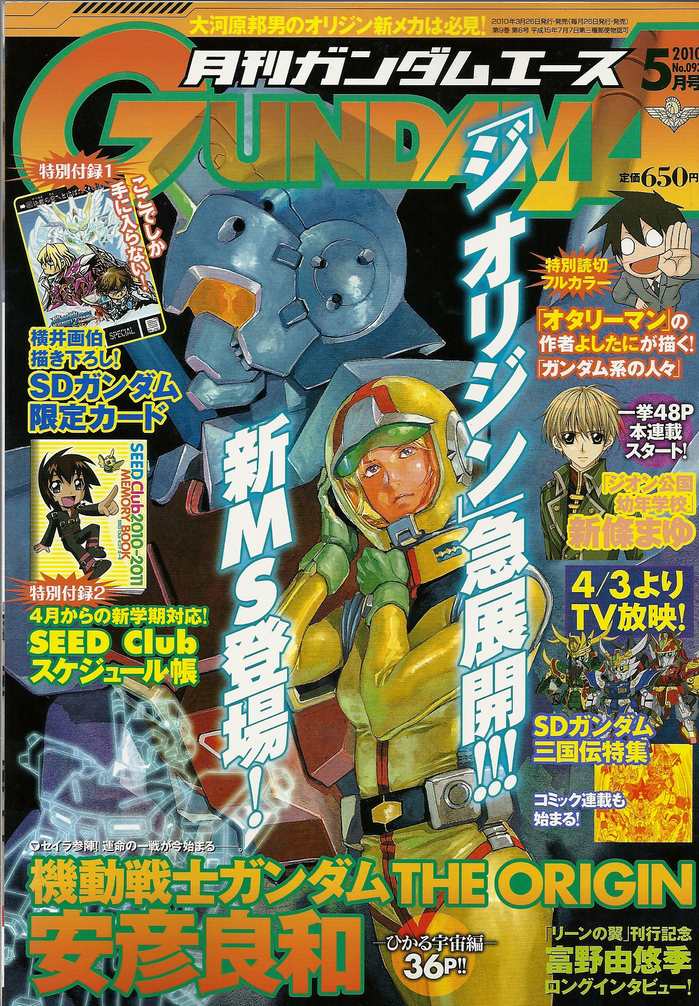 掲載する記事がいっぱいありすぎ・・・・、体が二つ欲しい・・・・。ネタがない時は、本当に探しても ないのに、アル時は腐るほど掲載するほどのネタがあるんですよねー。文章を書かなきゃ、画像 うpって手もあるんですけど、写真うpだけって俺的に利点なし・・・。 つうことで少し、遅くなりましたがガンダムエース5月号を購入して来ました。今月号は、ようやく ユニコーンの熱がトーンダウンしてきました。私的にもユニコーンへの熱が平熱程度には戻って きました・・・、あんまり熱意があると疲れますからねw ということで、今月もガンダムエース5月号をご紹介します。