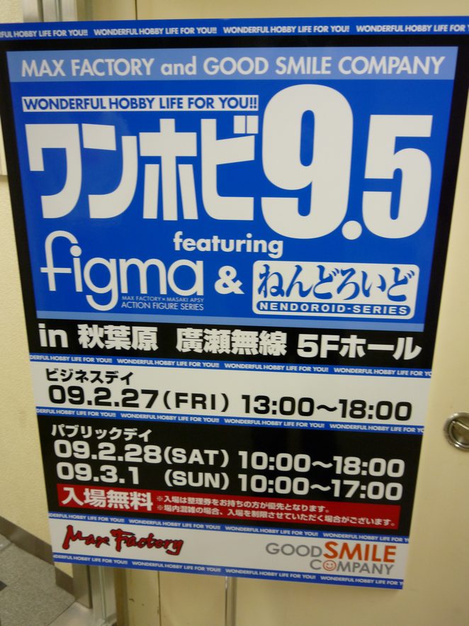 2月14日に開催されたグッドスマイルカンパニー主催の「WONDERFUL HOBBY LIFE FOR YOU!! 9」 は、大混乱と大混雑の中、フィギュアファンに不満の残る形で終わってしまいました。そんなフィギュア ファンの要望に応える形で開催されたのが「WONDERFUL HOBBY LIFE FOR YOU!! 9.5」。 今回の9.5には、ニコ厨が集まるようなゲストも転売厨が集まるような配布物・物販はなく、純粋に フィギュアファンが楽しめるフィギュア展示イベントとなっていました! 公式サイトでも掲載されているように「ワンホビ9と同じボリュームで各メーカーからの新作を 多数展示!」ということで、展示されているモノは基本的にワンホビ9と一緒です。ただし、ワンホビ9 の時は監修中ということで撮影禁止のものが開放されているものがいくつか、ありました。 では、「WONDERFUL HOBBY LIFE FOR YOU!! 9.5」に展示されていたフィギュアを掲載します。