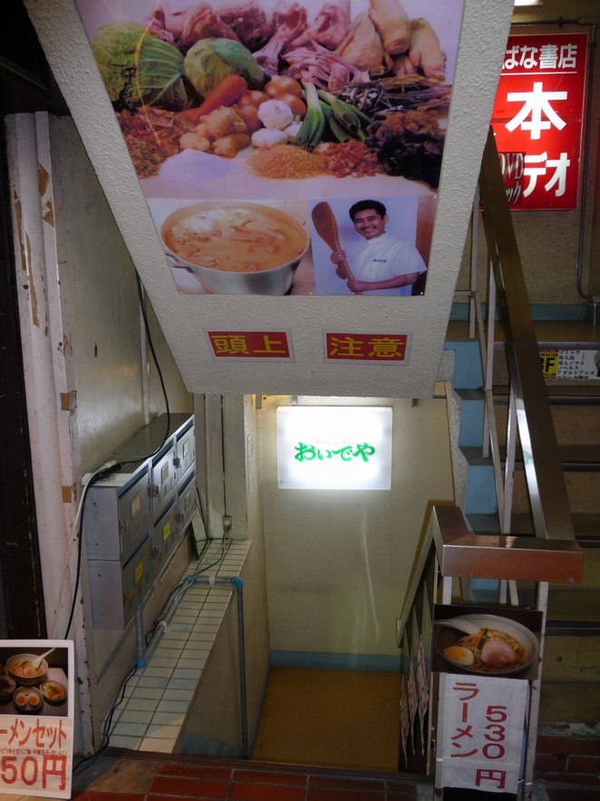不健康と分かっていても食べてしまうのが、至高の食べ物”ラーメン”。でも、そんなラーメンが 少しでも健康で、かつおいしかったら・・・食べたいですよね。 そんな健康志向なラーメンを出してくれるラーメン屋さんが、不健康な人が集まる街・秋葉原に 出来ました!! そのお店が「健康白菜麺処 おいでや」。ギトギトラーメンで有名な「じゃんがらラーメン」の近くで 「たちばな書店 秋葉原本店」とペッパーランチがはいっているビルの地下1階にあり、少し目立たない が通りに看板があるので、それが目印。 (じゃんがらとは、対照的なお店だよな・・・・) では、不健康極まりない私が少しでも健康になりたい、と思い食べてきましたので紹介します。