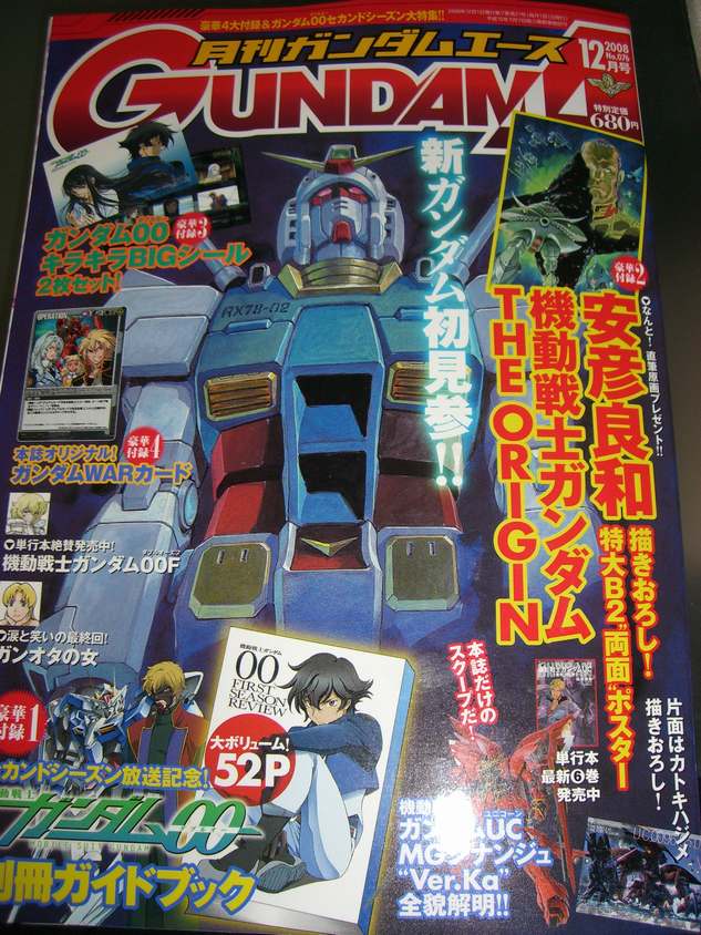 エース12月号を今月もフラゲ! 気になるのは、やっぱり00セカンドシーズンの最新情報。といっても放映開始されたばかりで ソレスタルビーイング復活を描いている現在、それほど最新情報ものっていないじゃないかな? と思っていましたが・・・。 そして、とうとう最終回を迎えた「ガンオタの女」に、とうとう計画が動き始めた「ギレン暗殺計画」、 一番の注目はシナンジュのプラモ化決定した「機動戦士ガンダムUC」、とうとう黒いユニコーン ガンダムの全貌が掲載されています!! では、ガンダムエース12月号をご紹介します。 アサガヲBlogは、ライブドアさんへ引っ越しました。