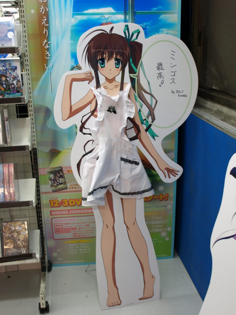 現在、エスカレーターを上がって6Fにたどり着くと、裸エプロンの女の子がお出迎えしてくれている! 真・恋姫無双の応援フラッグ巡礼を行う為にソフマップAM館6Fに立ち寄ったんですが、そこで 待っていたのは、2体の看板!! で、その看板がこちら!